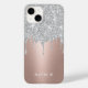 Modern Silver Glitter Drips Rose Gold Custom Name iPhone case.