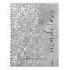 Elegant, Modern, girly silver grey glitter monogram script signature custom personalized spiral notebook. This feminine design featuring a silver grey (grey) shiny glitter on faux silver metallic background and a hand lettered signature name or monogram text template. The name is written in a huge beautiful swirly hand lettered swash tail font style. Great feminine gift for girls and woman for school, home office, business, bridal shower, wedding, birthday, sweet 16 birthday party, or anyone who loves pretty girly modern style.