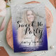 Modern silver glitter ombre blue photo Sweet 16 Invitation