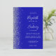 The left-hand edge of this elegant modern wedding invitation features a silver faux glitter design. The customizable text combines white handwriting, copperplate and italic fonts on a royal blue background. The reverse side provides space for wedding details on a solid royal blue background, along with a QR code guests can scan to visit your website and RSVP, which saves the cost of printing and mailing separate RSVP cards.