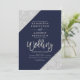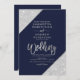 Modern silver glitter typography navy blue wedding invitation