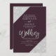 Modern silver glitter colour block typography on customizable dark plum purple and faux silver geometric stripes chic wedding , perfect for elegant, luxurious wedding,