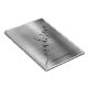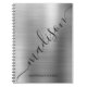 Modern, girly silver grey monogram script signature custom personalized spiral notebook. This feminine design featuring a faux silver grey (grey) brushed metallic background, a hand-writing signature name or monogram text template. The name is written in a huge beautiful swirly hand lettered swash tail font style. Great feminine gift for girls and woman for school, home office, business, birthday, wedding, bridal shower, sweet 16 birthday party, or anyone who loves pretty girly modern style.