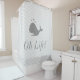 Modern grey whale on silver wavy background Shower Curtain. Text can be personalized.