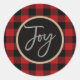 Modern Silver Joy Wreath Holiday Red Buffalo Plaid Classic Round Sticker