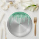 Modern Silver Metal Green Glitter Drips Paper Plate