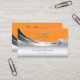Luxurious and elegant business card design featuring silver colours decoration with a glamourous sparkling diamond and orange background.