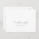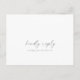 This modern silver script menu choice RSVP postcard is perfect for a minimalist wedding. The simple silver grey colour design features unique industrial lettering typography with modern boho style. Customizable in any colour. Keep the design minimal and elegant, as is, or personalize it by adding your own graphics and artwork. This wedding response postcard conveniently asks guests what meal they would like at your reception.