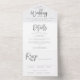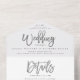A modern all in one script wedding invitation with large silver foil metallic calligraphy and a tear-off response card. Click the edit button to customize this design.