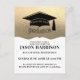 A simple modern minimalist graduation party invitation featuring grad cap and a faux platinum gold foil background banner. A simple grad invite that is suitable for high school or college grads. Customize for your graduating class year.