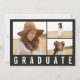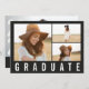 Modern minimal 3 photo graduation simple contemporary announcement card. Black and white design.