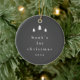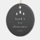 A Modern Simple Baby First Christmas Tree Photo Ornament with minimalist type on the front in black and white and newborn photo on the back. Click the edit button to customize this design with your details and photo.