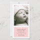Perfect for your new baby girl. With a crisp white border and a background of soft pastel pink and adorned with a little heart, his simply pretty birth announcement is modern and pure. Introduce your new arrival with a sweet photo and all the important details arranged on this vertical format photo card for a lovely keepsake they're sure to treasure.
