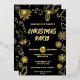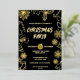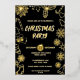 This Simple Modern Black and Gold Real Foil Elegant Xmas Party design features a poinsettia, a holly and berries branch, a candy cane, a pine, snowflakes and stars, a christmas hat, a stocking and more. The back of the invitation is a festive pattern of the same Christmas illustrations. You can customize the background colour. This design is perfect for a Christmas party. You can customise all the details for your event. See the whole matching collection!