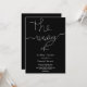 This elegant black and white wedding invitation is perfect for a modern wedding. the simple design features elegant white calligraphy on a black background.