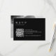 Modern QR Code Wedding RSVP card featuring a simple, minimalist layout with your QR code and the instructions beside in left alignment. The back has your favourite photo. All text is in white over a black background and may be changed to any colour you wish by clicking the "customize" button.