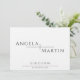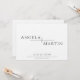 These modern minimalist 7" x 5" wedding invitations feature placeholders for the wedding couple first names, the date and time, location in black lettering on a neutral background. The stationary choice will determine background colour.