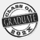 Simple and clean design featuring a black circle simulating a stamp with black typography that reads “class of” and the graduation year on a white background. Simply add the graduation year. Use it as a graduation party favour decor sticker or envelope seal.