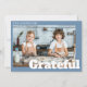Modern Simple Blue Grateful Photo Thanksgiving Holiday Card