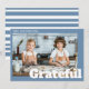 The design features modern bold text that reads "Grateful" with custom family name template in elegant handwritten script. The slate blue colour with bold white stripes adds a touch of sophistication, making it a perfect keepsake for your loved ones.