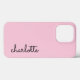 Modern Blush Pink iPhone Case with Name features customisable text in a stylish script handwritten style.