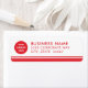 These custom branded white business return address labels feature your professional business logo design. Simply add your company logo to the round red and white placeholder image and personalize with your business name and address.