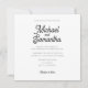 A minimalist black and white wedding invitation featuring a typographic design and simple calligraphy script font. Easily personalize by filling in with your own details.