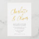 This chic and simple wedding invitation features modern calligraphy script in foil, a classic white background, and modern typography. This elegant yet simple design is a fabulous choice for any style of wedding. You can customize this design even further by adding a photo or additional text to the back. Foil is available in gold, silver, or rose gold and absolutely shines! Select real foil wedding invitations to add that wow factor!