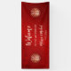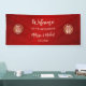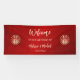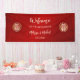 This Chinese wedding banner features gold double happiness symbols on a shimmering ruby red background. Welcome text in a modern handwritten script. There is enough space to change the text from "to the wedding of" to "to the tea ceremony of". Many matching products available.