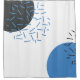 Abstract, cool, trendy graphic art made with simple geometric shapes. Modern, simple and playful graphic art in blue and grey colours. Circles and particle lines are used.