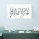 Modern, simple, minimal typographic design of a saying "Happy New Year" in tones of grey colour. Cool, urban, trendy and playful graphic art with handwritten typography.