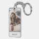 This adorable pet keychain features one of your favourite animal photos with your pets name written below in a modern, simple black type. The perfect keepsake for dog owners!