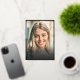 This is a modern and elegant high school graduation announcement in real gold pressed foil using a simple but classic font along with a single minimalistic photo on the front with an elegant gold frame border. The reverse side includes a message that you can personalize, along with another photo. Please contact the designer for any queries related to this design.