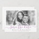 Modern script "save the date" in lilac purple colour, with couple's photo, simple and elegant. Great photo save the date cards for modern wedding and other events.