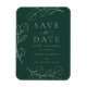 Modern simple eucalyptus leaves emerald green wedding save the date invitation magnet. A unique artist created minimalist stylish line art design to remind friends and family to keep the date free. Beautiful minimalistic eucalyptus foliage, a simplistic greenery drawing with white elegant typography script on a dark green background. A minimalistic stylish botanical design that is easy to personalize using the easy to use template. Original artwork by artist Catherine Sweetman