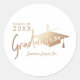 Trendy White and Gold Graduation Party Favours Stickers Featuring Graduate Cap and stylish calligraphy script in gold metallic faux foil. White Clean Background, customizable in any colour.