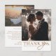 Celebrate your special day with this elegant wedding thank you card featuring a crisp white background and shimmering gold coloured text. This customizable design lets you add two of your favourite wedding photos along with your own personal message. The gold-on-white palette creates a timeless and sophisticated look, perfect for classic, minimalist, or contemporary wedding styles. It’s a beautiful way to thank your guests and create a keepsake they’ll cherish.
