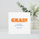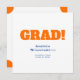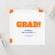 Modern graduation party square invitation with an orange and blue colour palette, easy to customize, printable or downloadable for immediate use.