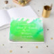 A wedding guestbook perfect for a modern boho or arty themed wedding with original lime green watercolor painting design by artist Sacha Grossel. Text is fully customisable.