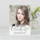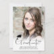 Announce your high school or college graduate's achievement with this modern, simple handwritten script typography GRADUATE title design announcement featuring 2 photos (1 on the front and 1 on the back) with a black graduation cap or mortarboard accent. The back offers a text field for information about your graduate's achievements, activities and future plans if desired. ASSISTANCE: For help with design modification/personalization, transferring the design to another product or if you would like coordinating items, contact the designer BEFORE ORDERING via the Zazzle Chat MESSAGE tab or email makeitaboutyoustore@gmail.com.