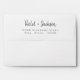 Modern minimalist wedding return address envelope feature bold handwritten brushy script bride and groom's name in charcoal black and white colour, simple and stylish.