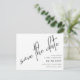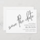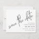 A simple design with contemporary style, this Save the Date card has modern handwritten type face spelling out "Save the Date" and placed diagonally on the card. This type face is paired with a crisp serif type face in an easy-to-use text template for personalizing with your wedding info. Matching wedding invitations and other items are available using this design.