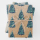 Modern Simple Kraft Snowy Green Christmas Trees Wrapping Paper Sheet
