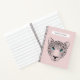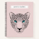 This stylish notebook is perfect for back to school! The front features a simple, bold leopard face with aqua blue eyes, over a light blush pink background. The back of the notebook contains a matching leopard pattern. Easy to personalize for a great gift!