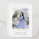 Graduation photo announcement card with a modern, simple, minimalist design, and photo frame with a curved arch shape.