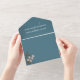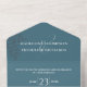 This design features a modern simple minimalist QR code, budget blue botanical blue QR code, modern website online rsvp response, minimal guest response via the website, trendy simple typography script font, trendy stylish calligraphy ampersand, budget-friendly invitation template, wedding details web address, scannable QR code response, respond via website code, elegantly folded seal and send