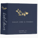 A simple but sophisticated, elegant and traditional yet chic and modern wedding gift with modern gold script. Two small branches of eucalyptus leaves, drawn in graphite pencil, make a subtle and original decoration that lends an elegant but soft touch to festive events.