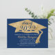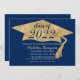 Modern Simple Navy Blue Gold Graduation Hat Invitation