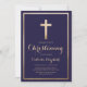 Modern Simple Navy Gold Cross Border Christening Invitation