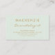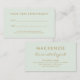 Modern Simple Pastel Green Salon Appointment Card. A modern minimalist design with gold typography on an elegant pastel green background. Sans serif typography for the employee name and salon information; handwritten script for the job title.